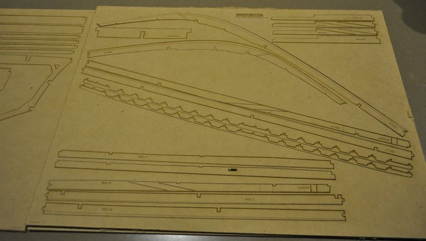 You will need to supply the long deck runners, chine, gunwale and intermediate runner timbers and the hull covering materials as well as the running gear. The deck runners are 1/2" x 3/16" (13mm x 5mm), the chine and gunwales and the intermediate timbers are 4mm (5/32") square section material as full lengths (1200mm or 4' ) of balsa or harder wood such as Ramin or Spruce and you can cover the hull in whatever you like, on the 1/35th scale hull-2 I used 1 layer of 0.8mm (1/32") Balsa wood in about 1" strips and then covered with narrow strips of 0.8mm Birch ply which I laser cut into 1/35th scale 6" wide planks, just like the real thing which was covered in two layers of 1/2" Mahogany planks with waterproofed muslin cloth between the layers. This method is probably the most efficient in time and materials and the balsa superglues extremely well.